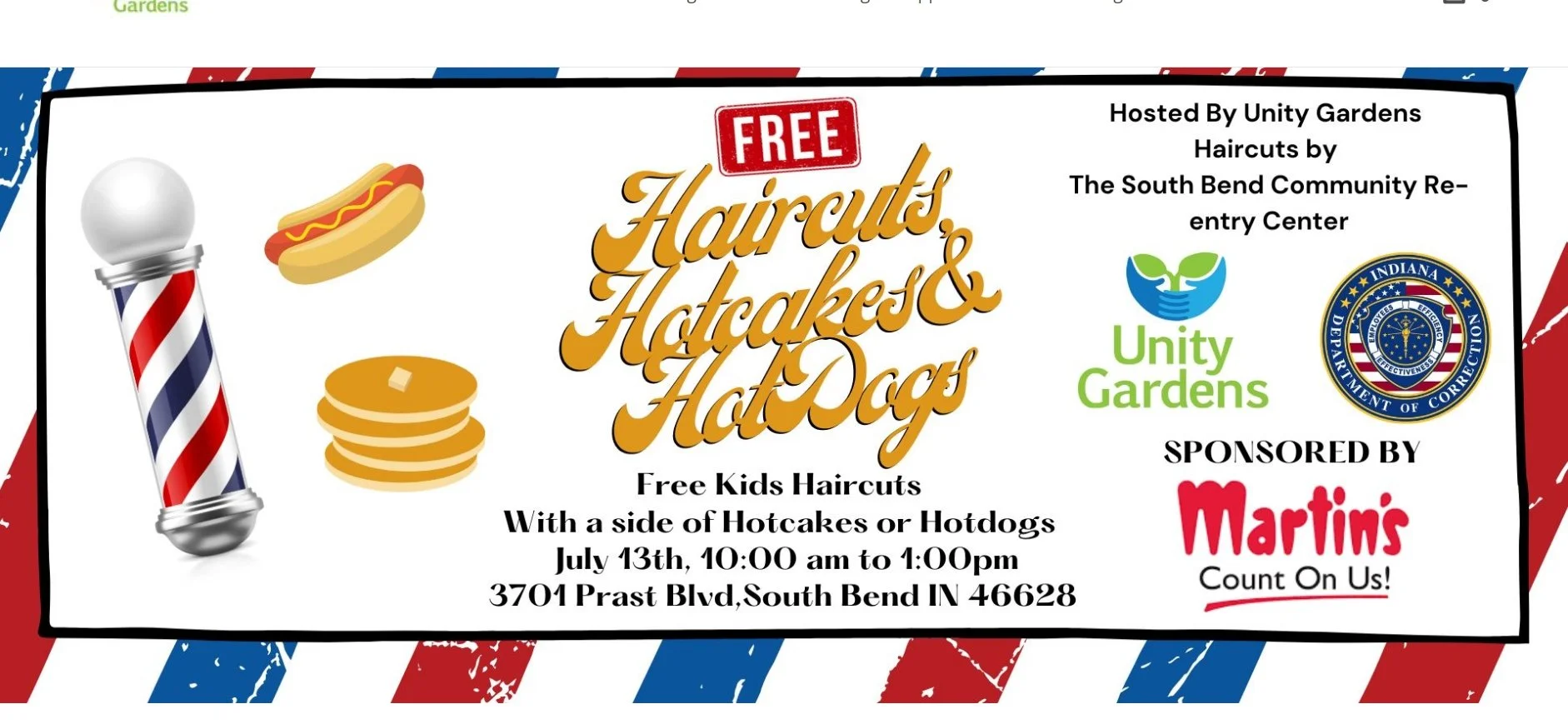 3704 Prast Boulevard South Bend, IN, 46628 United States ✚ gCal ✚ iCal Join Unity Gardens on August 10 for free kid’s haircuts with complimentary hotdogs and hotcakes!